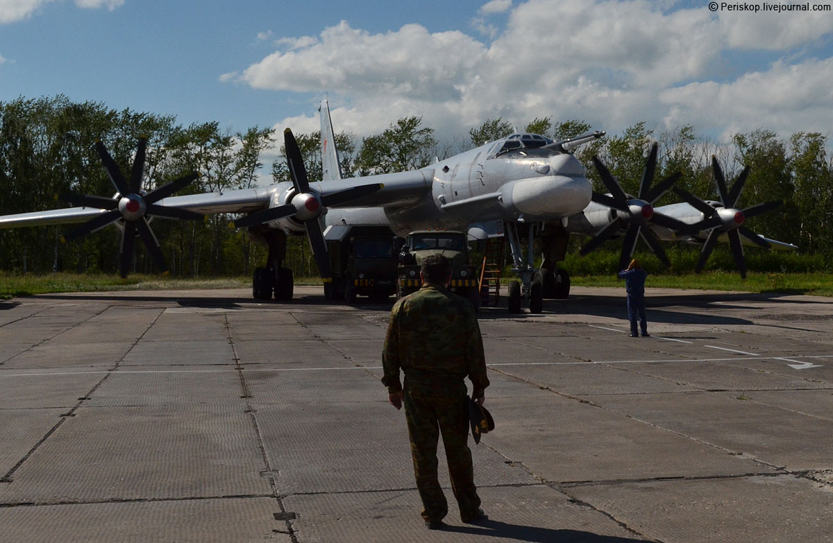 Видел Ту-95 вблизи и я. Сперва — давным-давно, ещё при СССР в Серышево, а 5 лет назад — на авиабазе Дягилево, когда был написан большой пост — Дягилево: большой авиационный день. Часть 2: аэродром и полёты. Пара снимков оттуда: