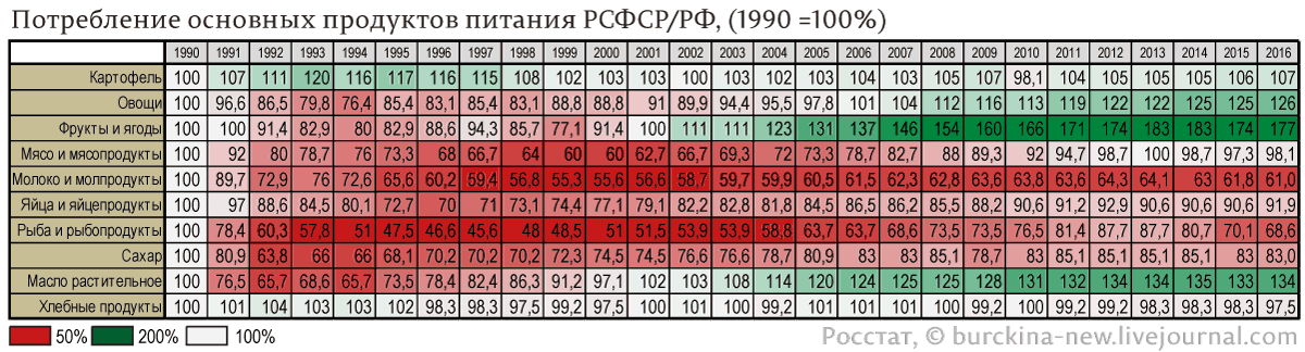 В чем главная ошибка любителей СССР. Они думают что потребление основных продуктов питания, равно продовольственному балансу РФ или РСФСР