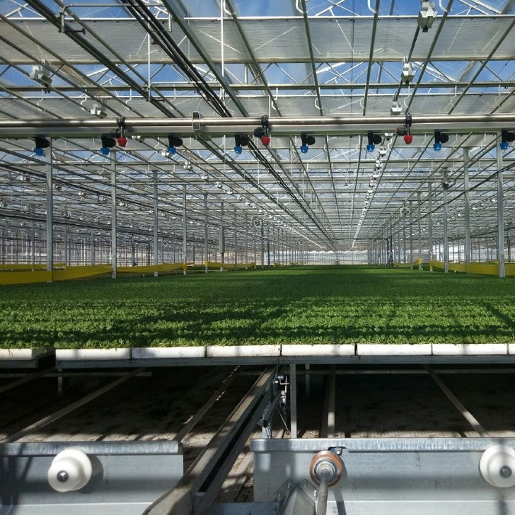 Одной из его особенностей комплекса является полная роботизированность блока по выращиванию салатов. Всё его пространство — около 3 гектаров — сплошным ковром покрывают растения. Здесь не предусмотрено место для нахождения персонала, поскольку уход за рассадой, уборку урожая и другие работы осуществляют машины.