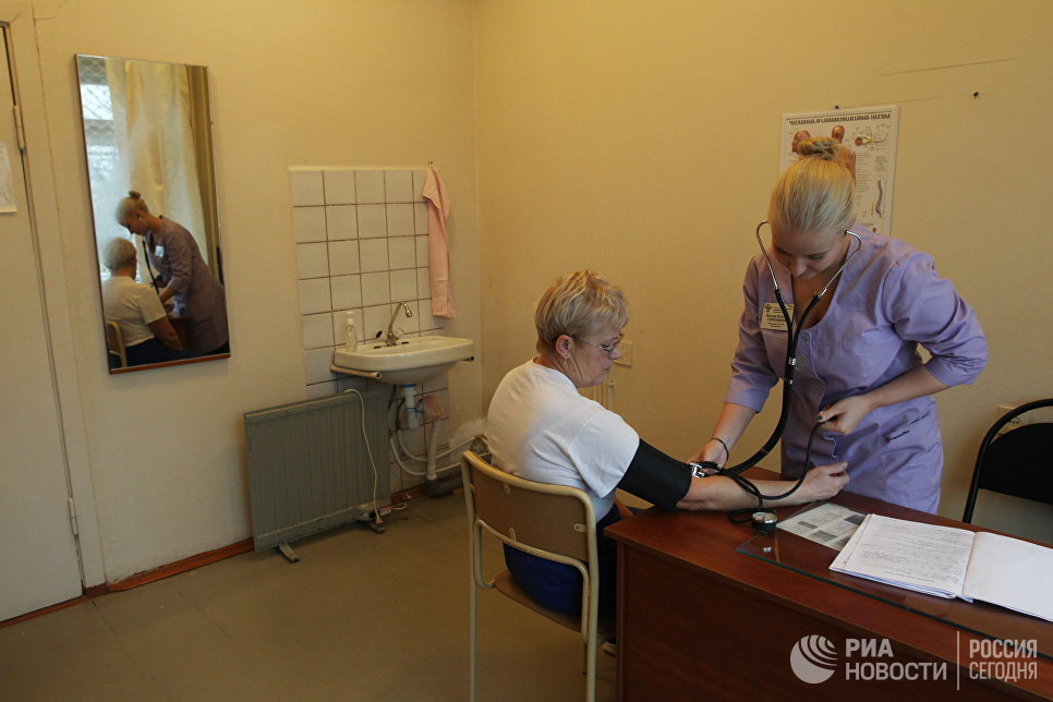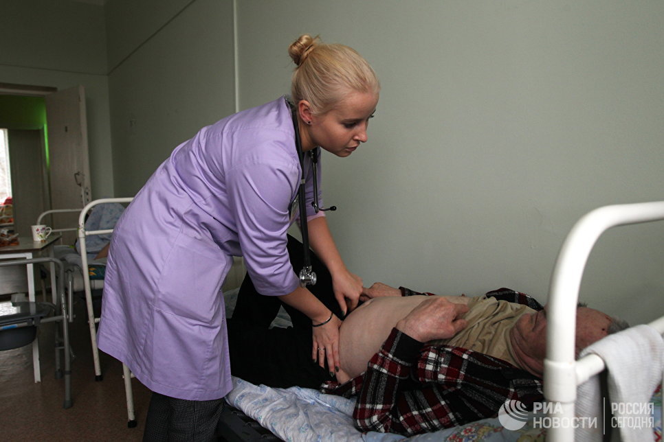 © РИА Новости / Вера Костамо Наталья Флеглер во время обхода в отделении сестринского ухода в Заостровской участковой больнице, Архангельская область
