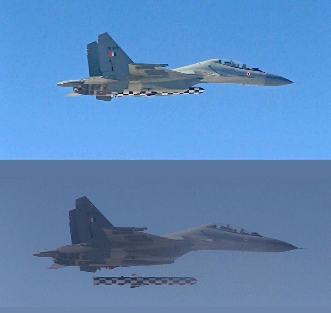 Первый практический испытательный пуск сверхзвуковой ракеты BrahMos-A с истребителя Су-30МКИ ВВС Индии, 22.11.2017 (с) ВВС Индии