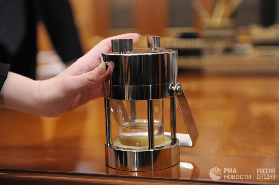 Колба с пробой доисторической воды из подледного озера Восток в Антарктиде