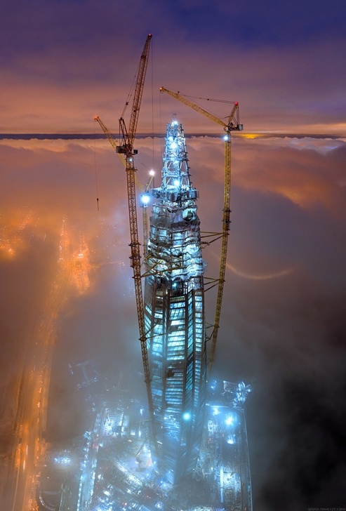 Это завершение строительства «газоскреба». Примечательно, что в комментариях есть снова недовольные, которым не нравится, что в России делают такие проекты. И, разумеется, пока его не было — сколько мы услышали, что вот в США есть «Эмпайр Стейт», в Гонг-Конге есть, да везде, кроме «этой страны»!