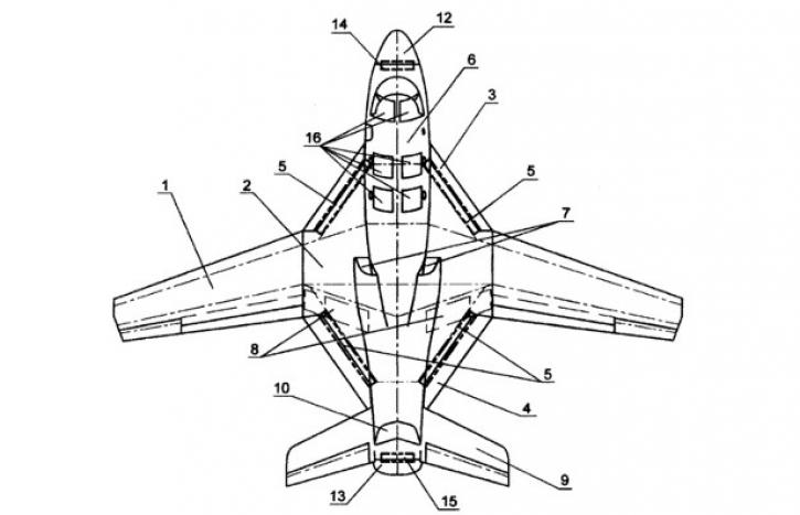 Представленный проект непривычен для «летающих радаров», самолет по компоновке ближе к современным малозаметным ударным машинам – привычной вращающейся над фюзеляжем антенны РЛС на нем нет: антенны АФАР разнесены по поверхности самолета, встроены в его конструкцию.