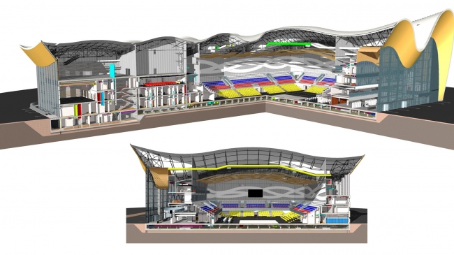 Центр художественной гимнастики имени Ирины Винер-Усмановой в Лужниках. 3D разрезы © ООО «ТПО Прайд»