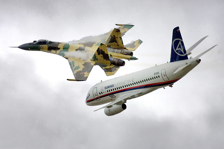 Истребитель Су-35 и самолет Sukhoi Superjet 100, 2009 год