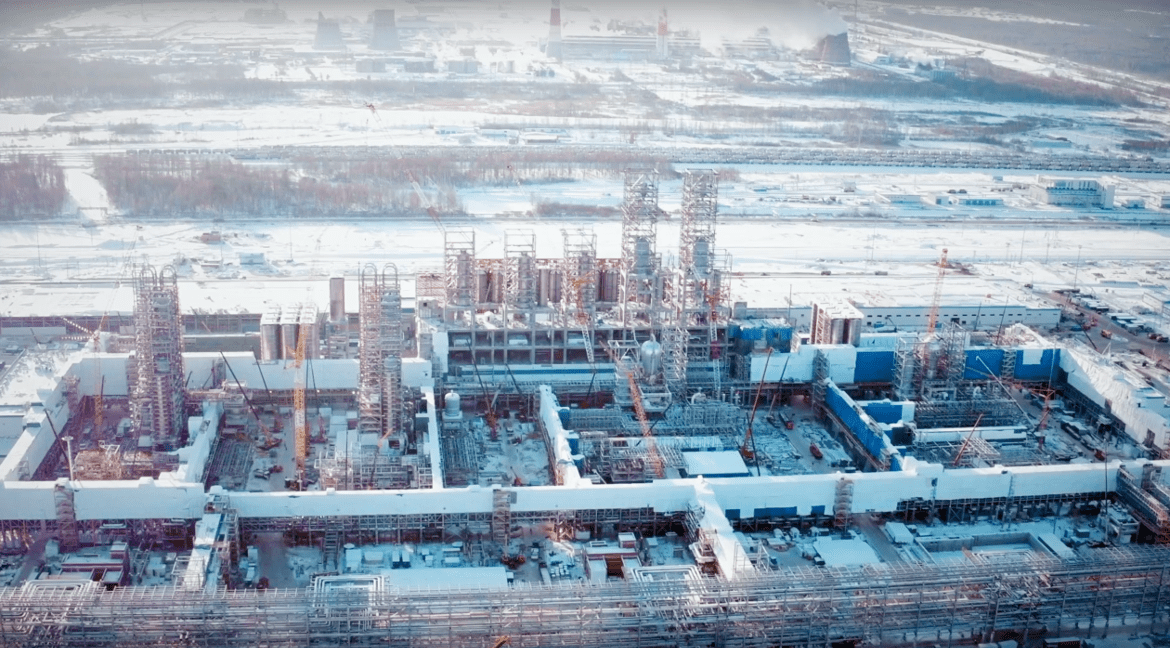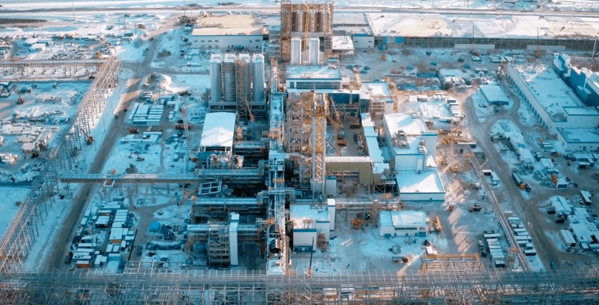 Общий вид на строительную площадку ЗапСибНефтехим. Январь 2018 года