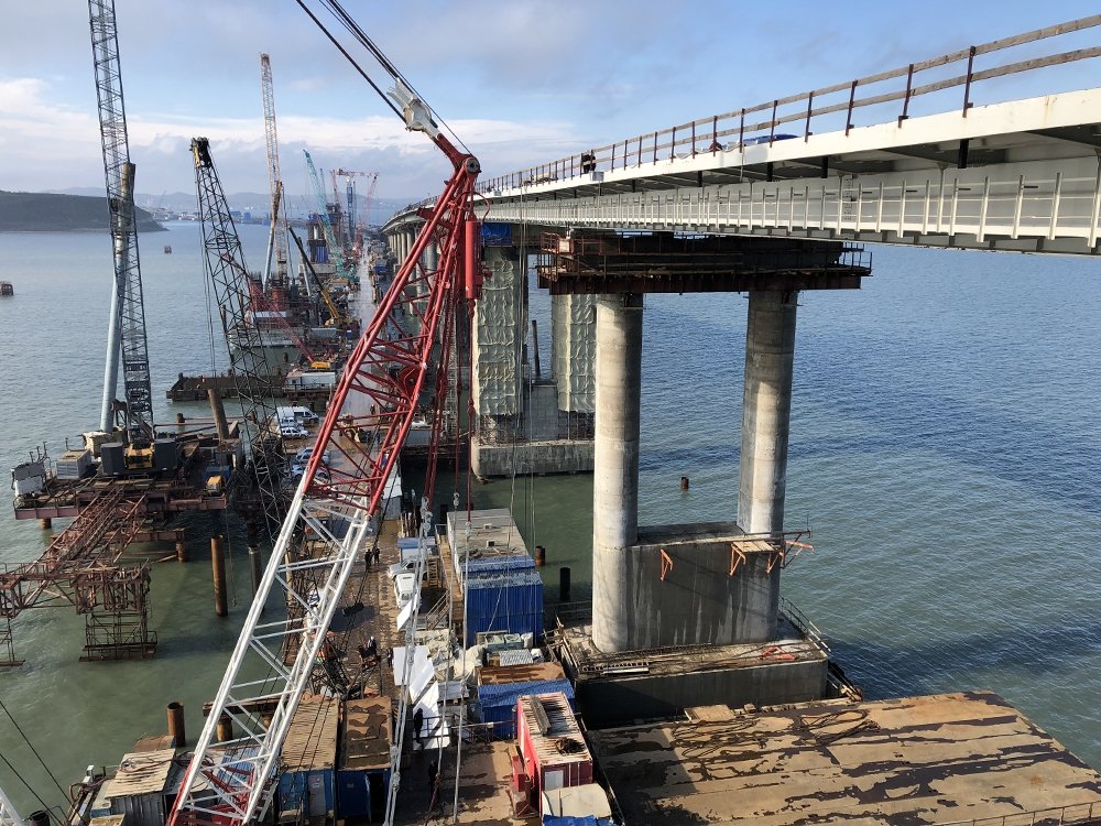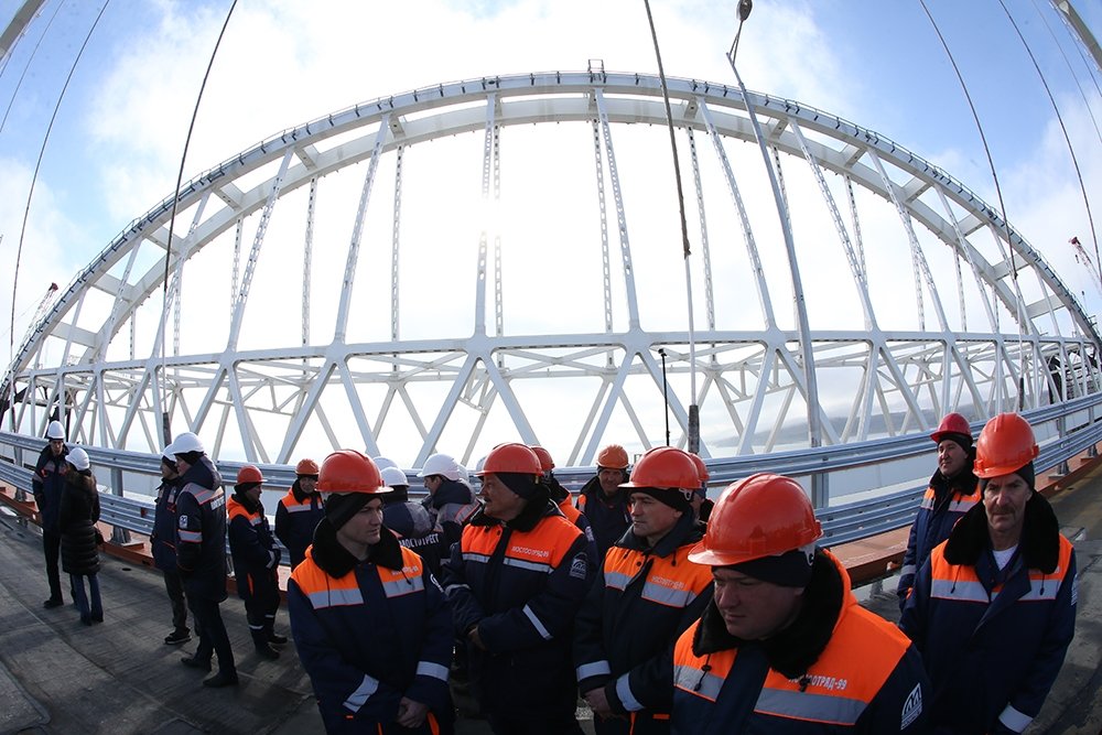Владимир Путин лично контролирует ход строительства, которое началось в феврале 2016 года. Это самый длинный мост в России и Европе — 19 километров, состоит он из двух частей — автомобильной и железнодорожной. Завершено сооружение основных конструкций автодорожной части, идет укладка асфальта, установка ограждения и опор освещения.