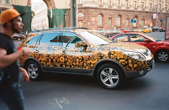 Даже на Западе можно встретить машины, украшенные русской национальной росписью.