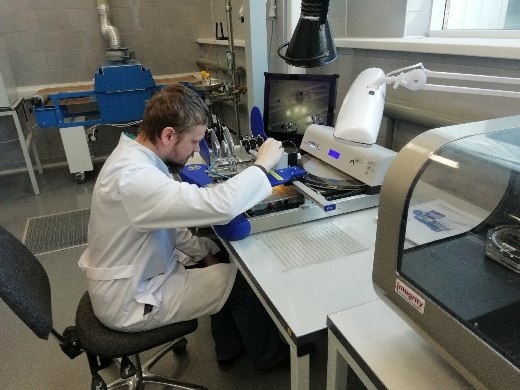 В высокотехнологичной лаборатории разрабатывают материалы для печатной электроники — электропроводящие пасты и чернила на основе серебра, углерода, углеродных нанотрубок, а также растягиваемые электропроводящие пасты.