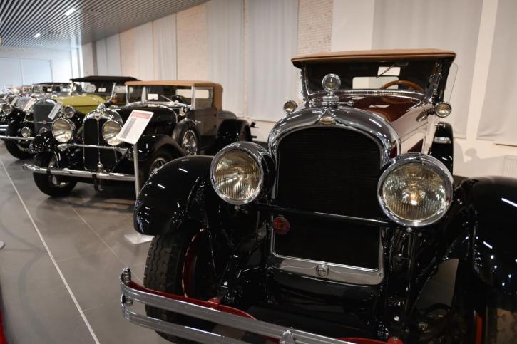 На первом этаже представлены реплики первых машин, а также исторические образцы ретромашин начала 20 века. Здесь можно увидеть точную копию первого автомобиля Карла Бенца, первый люксовый Rolls-Royce 40/50 HP Silver Ghost, императорский Delaunay-Belleville, коллекцию элитных американских автомобилей рубежа 1920-30-х годов: Cadillac V-12 и V-16, Packard, Pierce-Arrow, Auburn и другие.