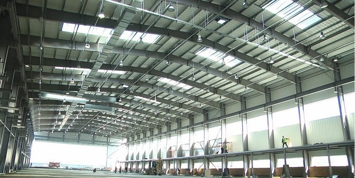 На данный момент ведется монтаж витражных конструкций фасадов и металлической кровли.