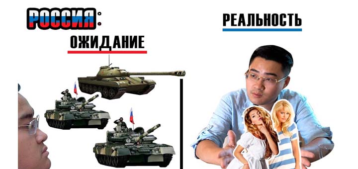 Хаовэнь: По приезду в Россию, я ожидал увидеть танки, потому что я видел ролики, находясь еще в Китае, когда танк едет прямо по дороге в России. В Китае считают Россию боевой нацией, поэтому часто можно встретить в видео о России, как военные самолеты пролетают над городом. Я ожидал этого момента…