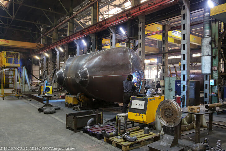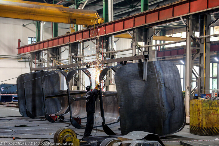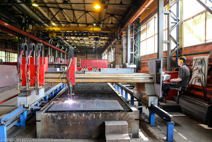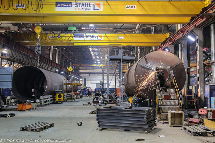 Что касается технологического процесса, то вкратце он выглядит следующим образом: конструкторское бюро придумывает и запускает в производство, в заготовительном цехе происходит первичная заготовка деталей, там делают раскрой листового проката, гибку листов, осуществляют поузловую сборку и не сложную сварку и т. д.
