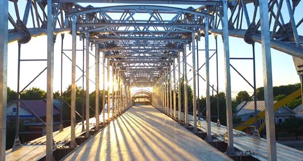 Время установки около 4 часов. Легче традиционных для России конструкций из стали – в 3 раза, железобетона – до 6 раз. Это мосты по которым через пару лет мы будем переходить улицы и железнодорожные пути, со временем появятся и транспортные. Что для России событие, для других стран почти столетняя история. Алюминий в мостостроении применяют активно в Германии, США и Японии. В нашей стране все проекты пока носят индивидуальный характер и реализуются в режиме оперативного управления. Единственным алюминиевым мостом в России был Коломенский пешеходный мост через канал Грибоедова в Петербурге. Построен в 1969 году. В 21 веке к реализации пилотных проектов по проектированию, производству и монтажу мостов из алюминия и на стартапе подключены металлургические гиганты российской алюминиевой промышленности. Цель нашего путешествия в этой программе — Красноярск. Едем на КРАМЗ. Увидим как производят, собирают и устанавливают мосты.
