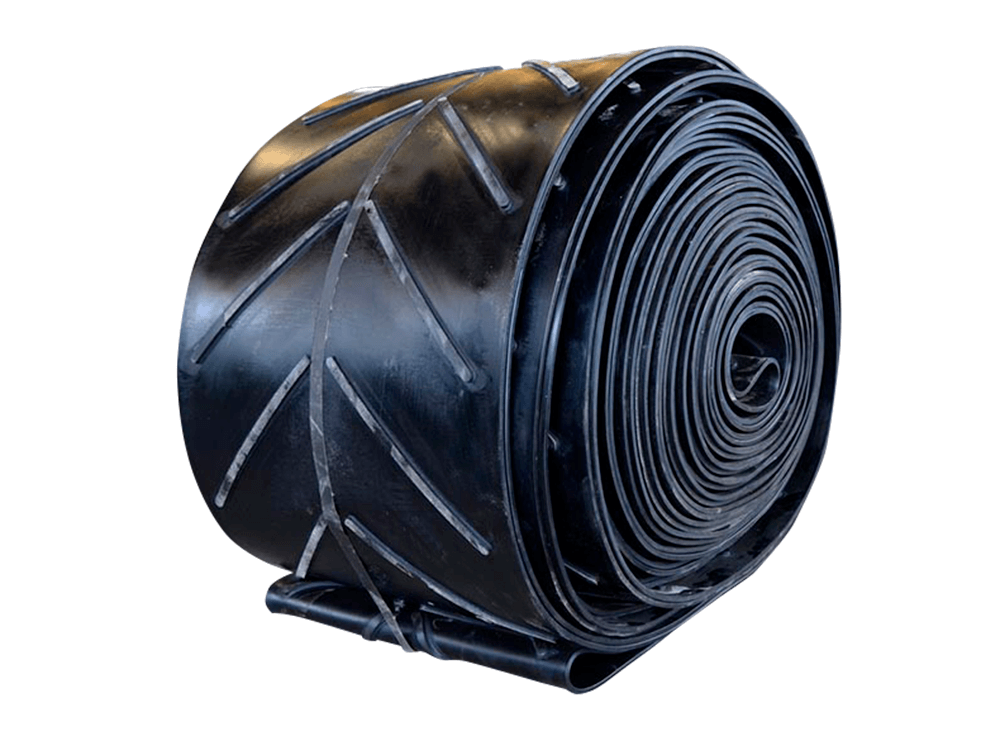 На наклонных конвейерных линиях, выполняющих транспортировку тяжелых абразивных грузов, обычного резинотканевого полотна с гладкой поверхностью недостаточно — продукция перемещается и ссыпается с поверхности.