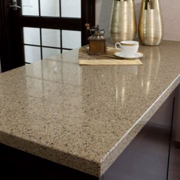 - Бытовая область. Здесь камень применяется в качестве декоративного оформления кухонных помещений. Это могут быть столешницы самых разных форм в совокупности с литой мойкой, подобранной по текстуре и цветовой гамме. По мимо всего прочего, подобрать столешницу и мойки и соединить их можно так, что не будет видно швов соединения. А если после монтажа произвести еще и шлифовку, то конструкция будет выглядеть как единое целое. Еще одним применением акрилы в бытовом направлении является использование плитки для облицовки стен в ванной комнате и фартуков в кухне. Подоконники и садовые скамейки. Если камень приобрести в измельченном виде, то им можно оформить сухой ручей на садовом участке.