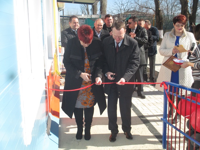 Красную ленту перерезали Светлана Кныш и Константин Бахарев. Для гостей была проведена экскурсия по группам детского сада.