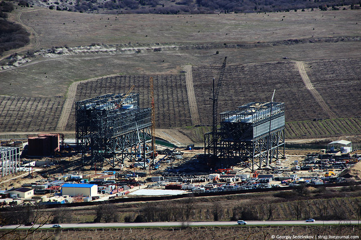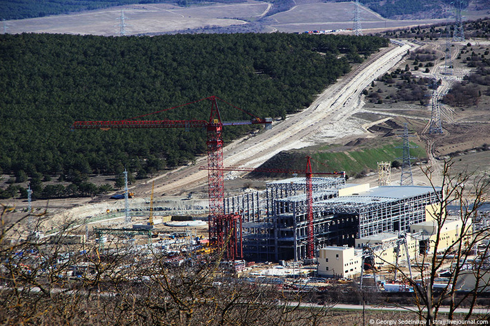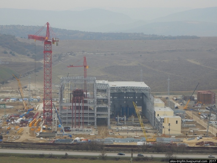 Продолжаем следить за строительством стратегического объекта для Севастополя. Как видно стройка Севастопольской ТЭС идёт ударными темпами. Стройка началась в начале 2016 года тогда на месте строительства было чистое поле, а осенью 2016 года там уже вырисовывался скелет будущей ТЭС. Тепловую электростанцию планируют запустить в 2017 году. Судя по ходу строительства скорее всего строители сдержат своё обещание и сдадут стройку в 2017 году.
