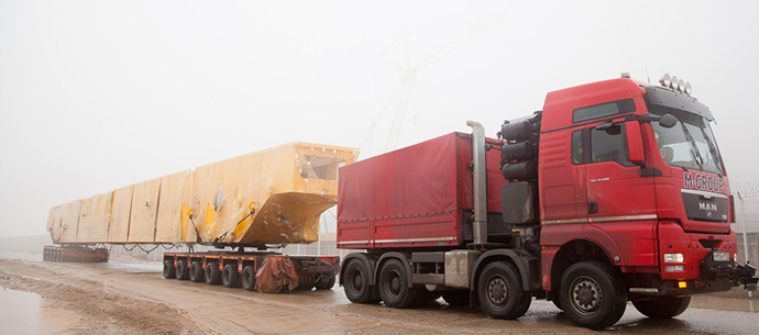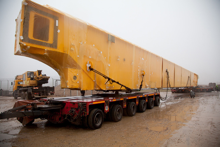Перевозка полярного крана в соседнее государство заняла около двух недель. Самые габаритные узлы — пролетные балки длиной более сорока метров — доставлялись на объект с помощью специальных тягачей и тележек. Впервые транспортная компания, с которой «ТЯЖМАШ» заключил договор, справилась с перевозкой обеих балок одновременно, что существенно сократило сроки.