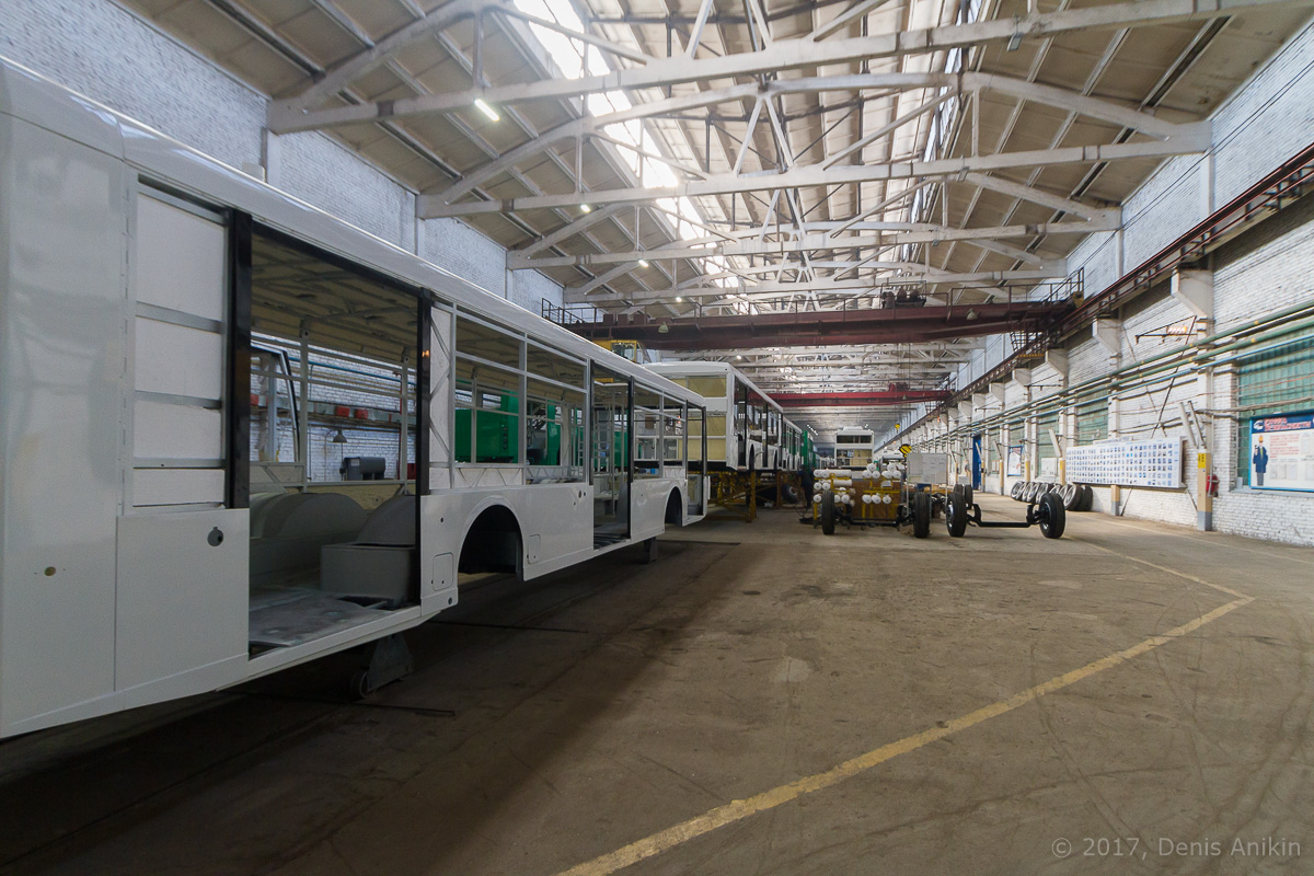 Сейчас, после оптимизации всего производства, от самостоятельного изготовления вообще всех компонентов отказались, и всё производство осталось можно сказать всего в нескольких цехах, где и собирают троллейбусы из различных комплектующих. Все троллейбусы, производимые тут, собственной разработки и есть для этого отдельный цех, где разрабатывается и испытываются прототипы.