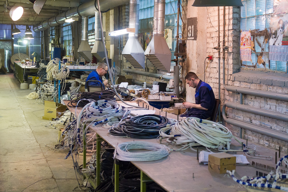 Жгуты проводов, как высоковольтных, так и низковольтных изготавливают в отдельном цехе, расположенном за стенкой.