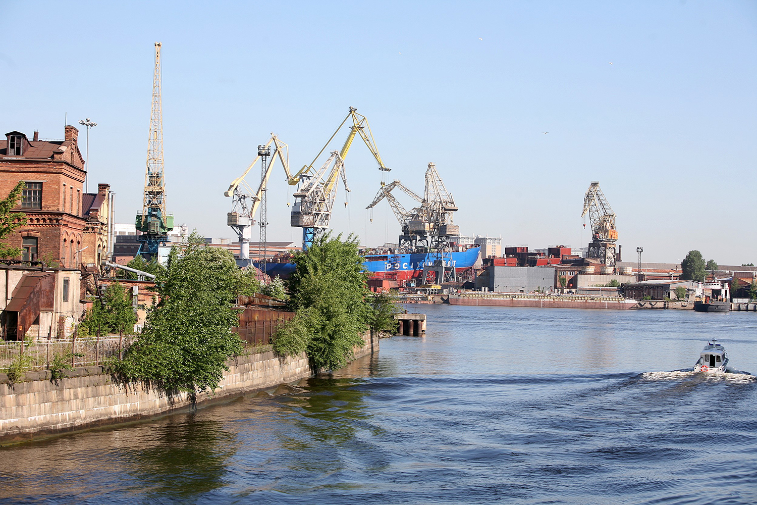16. Головной ледокол проекта 22220 «Арктика на стапеле Балтийского завода. Вид с моста через Екатерингофку.