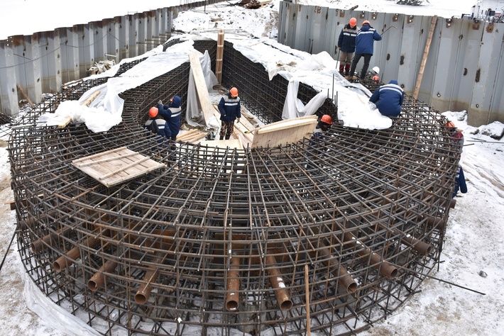 32. Идёт сооружение анкерного ростверка правого пала верхнего бьефа, февраль 2017 года: