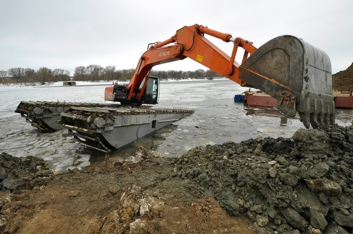 7. 8. Гидротехнические работы в реке велись с помощью плавающего экскаватора и водолазов: