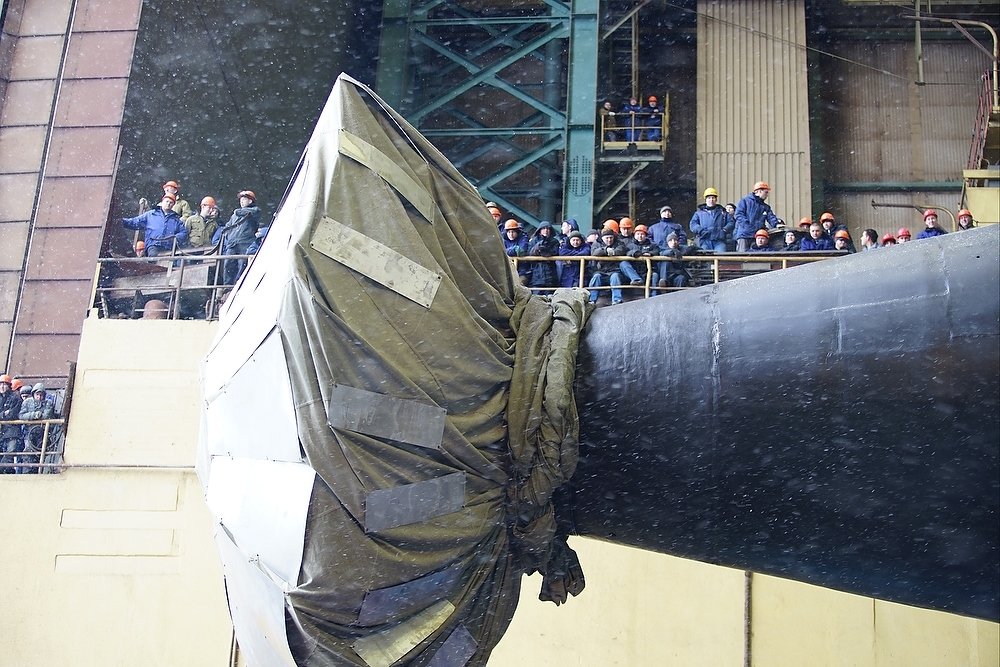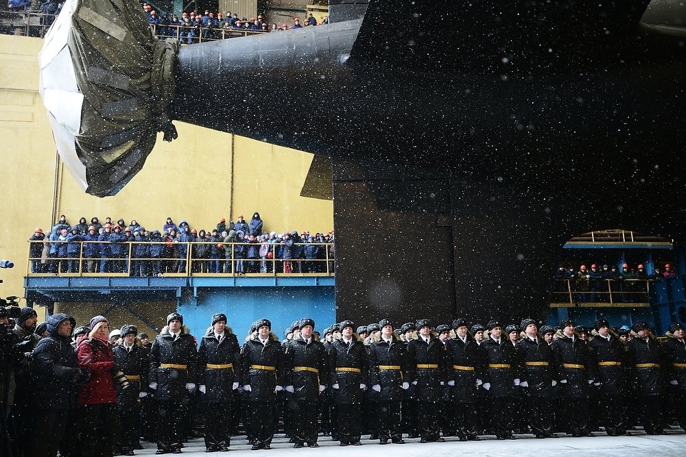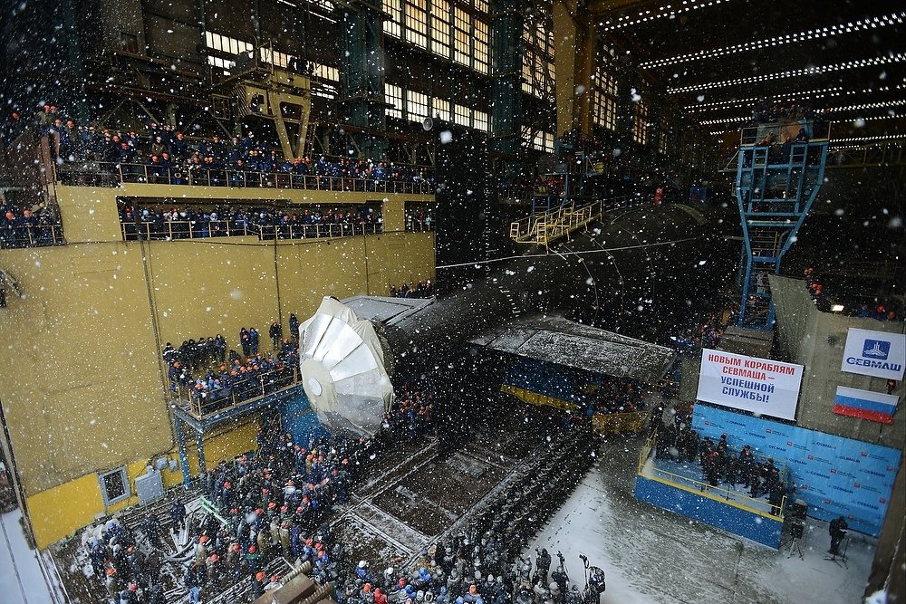 На северодвинском оборонном предприятии «Севмаш» состоялась церемония вывода из эллинга головной атомной подлодки четвертого поколения проекта «Ясень-М» «Казань». Она была заложена в 2009 году.
