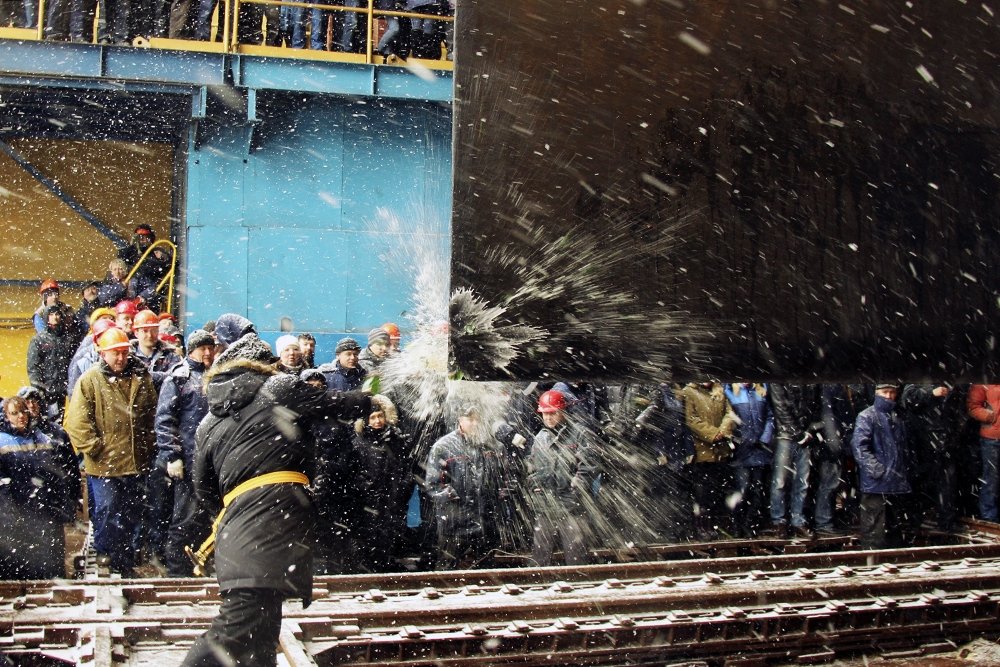 Команду о выводе АПЛ из эллинга дал генеральный директор «Севмаша» Михаил Будниченко. А капитан 1 ранга Александр Бекетов разбил о ее борт традиционную бутылку шампанского. Также он назначен командиром экипажа АПЛ «Казань».