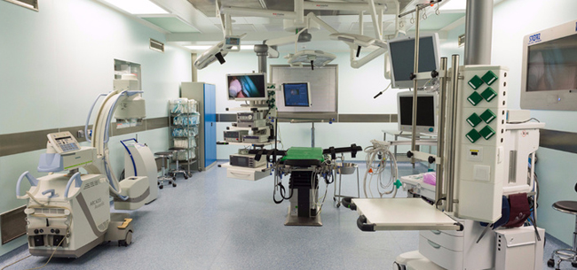 Операционные залы оснащены аппаратурой для высокотехнологических видеолапароскопических, торакоскопических и артроскопических оперативных вмешательств. Хирургическое и анестезиологическое оборудование было поставлено ведущими мировыми производителями.