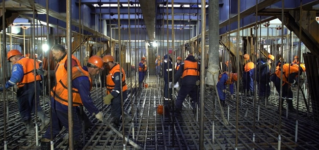 «На фарватерной опоре № 252 свайные работы выполнены в полном объёме. Строители приступили к очередному этапу: на свайном поле автодорожной части опоры формируется ростверк — монолитная железобетонная плита. В настоящее время „вяжется“ арматурный каркас этой плиты, который постепенно бетонируется», — сообщили в инфоцентре и добавили, что сейчас формируется нижний слой ростверка, в который непрерывным способом уложены первые 520 кубометров бетонной смеси.
