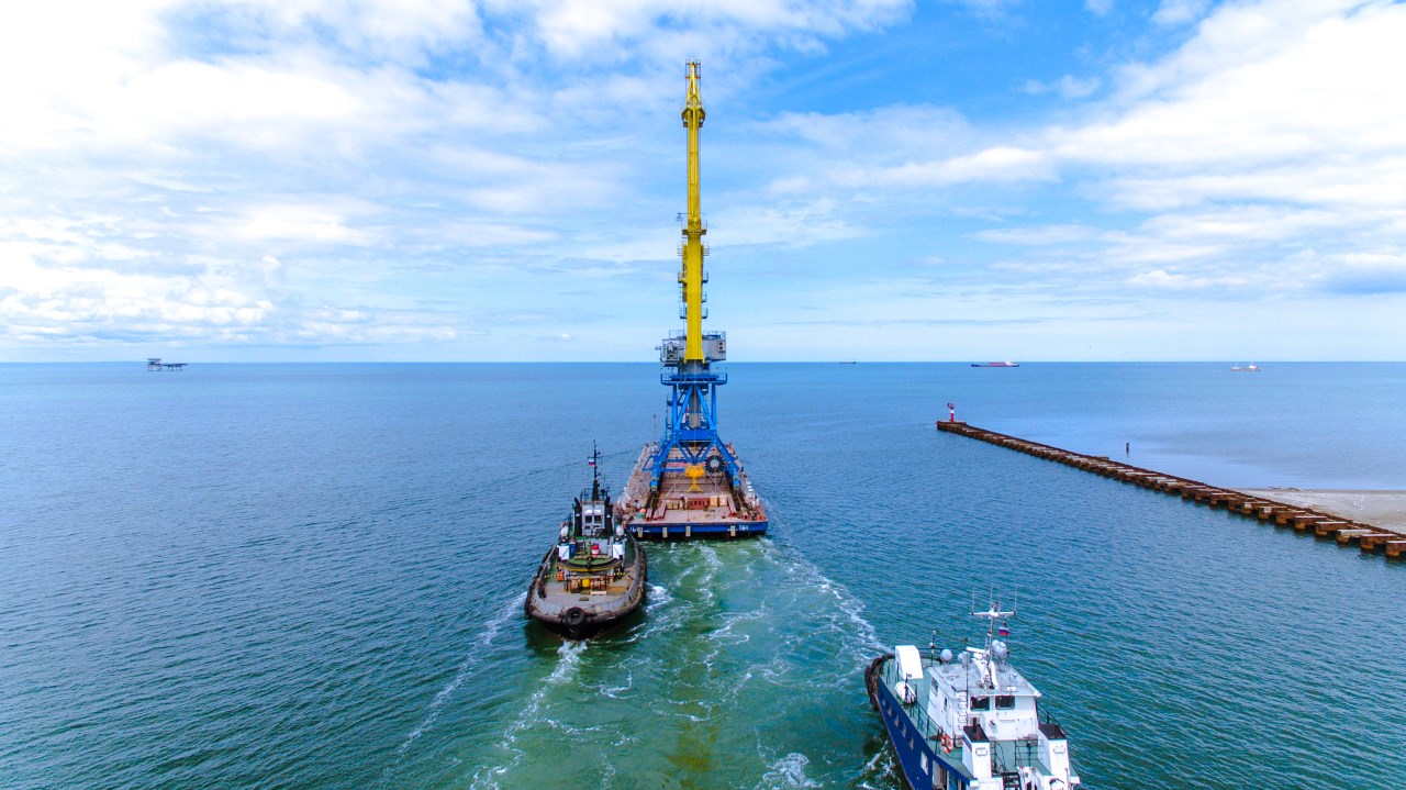 Доставка оборудования проходила в два этапа и стала одним из самых сложных проектов, реализованных ЗАО «СММ» за последние несколько лет. Первый этап транспортировки завершился в начале апреля, к месту эксплуатации было доставлено два портальных крана «Витязь»; второй этап завершился 11 апреля: у причала Восточного пирса Новороссийского морского торгового порта ошвартовалась специализированная баржа с третьим краном. Краны высотой 56 метров накатным способом были установлены на баржу, предварительно оборудованную специальными рельсами, и закреплены на палубе с помощью 88 тросов каждый. Установка одного крана занимала от 7 до 10 часов. Корма баржи была соединена с причалом аппарелью, по которой краны своим ходом поднимались на борт. В это время шел непрерывный процесс балластировки, судовые насосы перекачивали воду в носовые танкеры для сохранения устойчивости судна. Путь через Керченский пролив, от Темрюка до Новороссийска, в начале апреля отличается тяжелыми для судоходства погодными условиями: высокая скорость ветра, быстрое течение, сильные волны. Для обеспечения максимальной безопасности транспортировки на входе в пролив к буксирному составу, включающему баржу с кранами и буксир, присоединилось еще два буксира, притянутых к барже швартовыми.