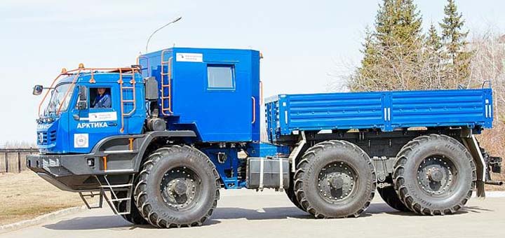 Российский производитель грузовиков и спецтехники КамАЗ выполняет программу испытаний первого варианта нового снегоболотохода КАМАЗ-Арктика с колесной формулой 6х6 и двигателем…