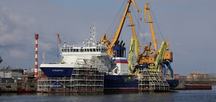 Головное судно тылового обеспечение проекта 23120 «Эльбрус» у достроечной стенки ПАО «СЗ «Северная верфь», июнь 2017 ...
