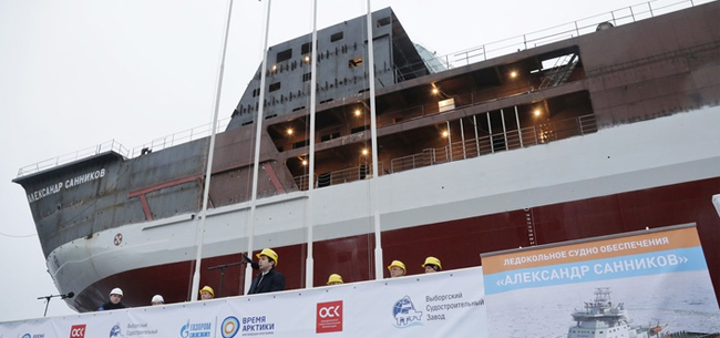 Сегодня в Выборге на ПАО «Выборгский судостроительный завод» спущено на воду ледокольное судно обеспечения «Александр Санников» проекта Aker ...