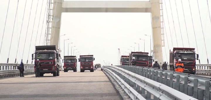 Наконец-то мы можем своими глазами видеть, как транспортные средства прессы и строителей передвигаются по Автомобильной дороге в Крым. Крымский мост…