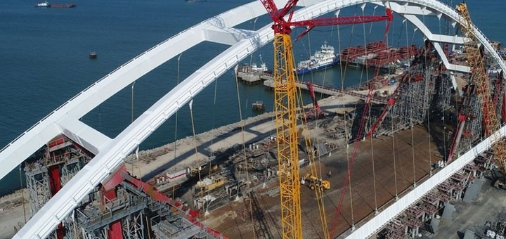 Автодорожный арочный пролет Крымского моста снят со стапеля на керченской технологической площадке, где в течение года велась его сборка. С помощью элементов тяг и толкающих…