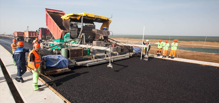 Строители уложили верхний слой асфальтобетона на пилотном участке Крымского моста на острове Тузла. Строители уложили верхний слой асфальтобетона на пилотном…